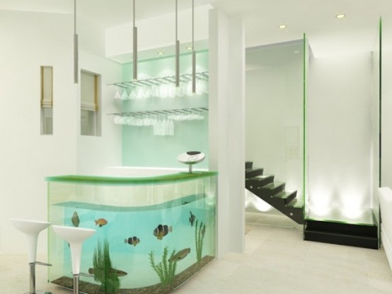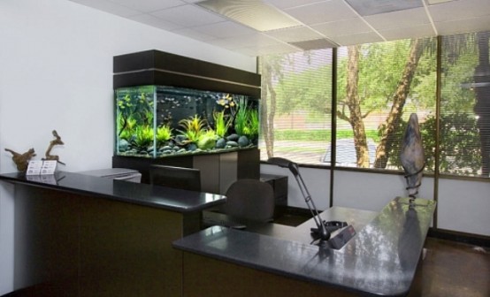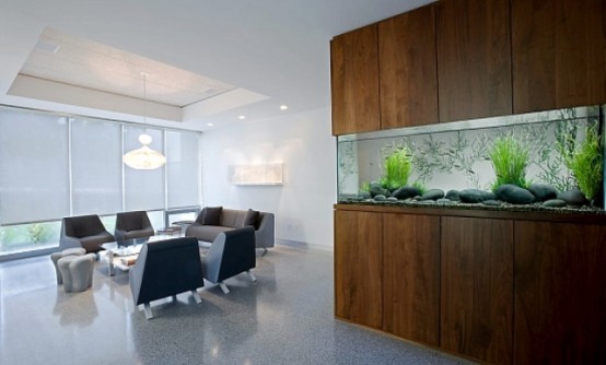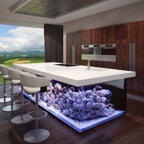 Αν αγαπάτε τη θάλασσα και συχνά σκέφτεστε το χρόνο που περάσατε στην παραλία, τότε φέρτε την θάλασσα σπίτι σας με ένα ενυδρείο. Σήμερα, υπάρχουν τόσα πολλά κομψά ενυδρεία που όχι μόνο δημιουργούν μια εκπληκτική ατμόσφαιρα, αλλά ταυτόχρονα τονίζουν το εσωτερικό και εκπληρώσουν ορισμένες λειτουργίες του. Μια πιο παραδοσιακή ιδέα για ένα τέτοιο κομμάτι είναι ένα τραπεζάκι ενυδρείο, αλλά σήμερα μπορείτε να βρείτε ακόμη και γραφεία με ενυδρεία. Χρησιμοποιήστε ένα μεγάλο εντυπωσιακό ενυδρείο ως ένα διαχωριστικό