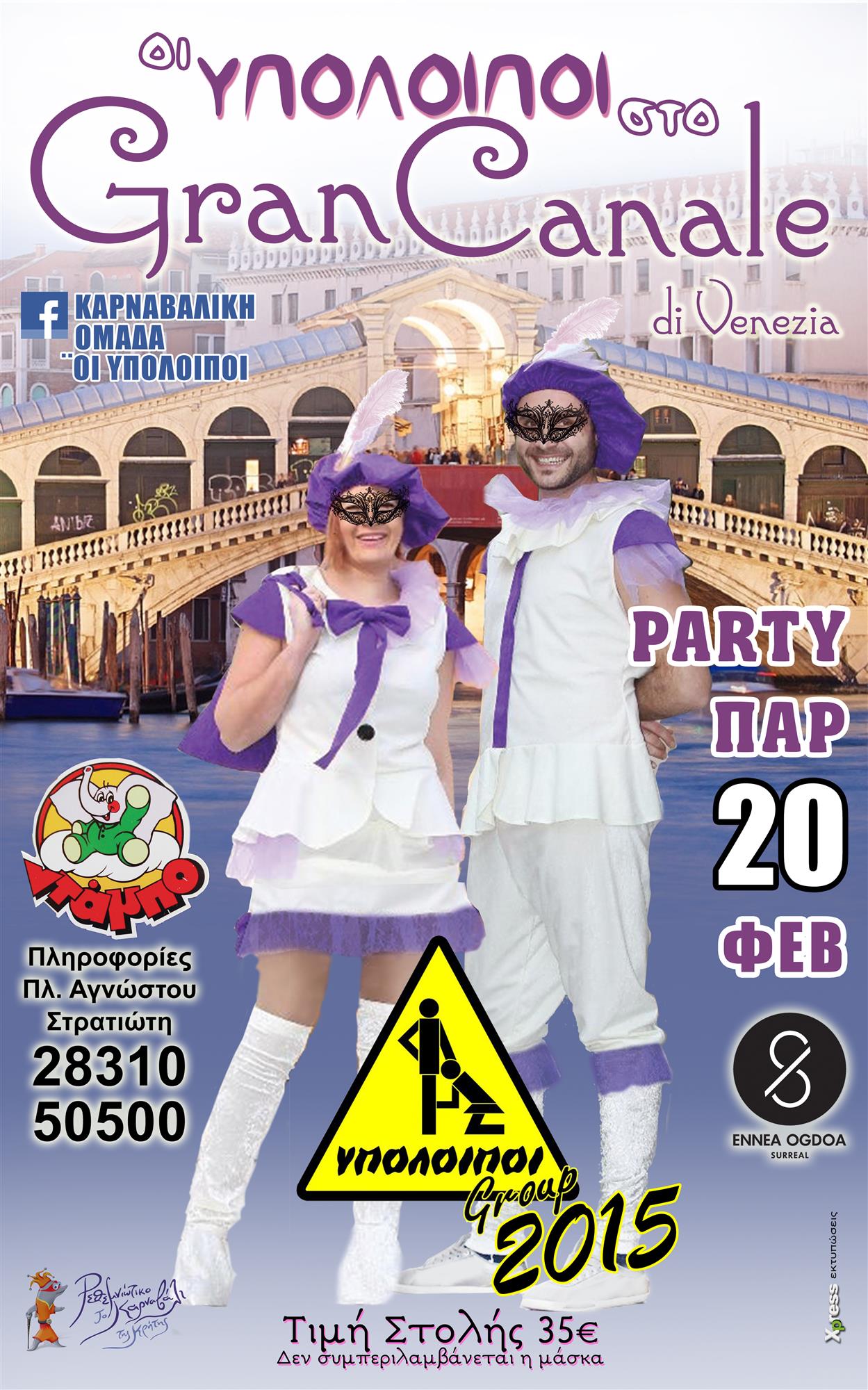 - Carnivaloi “Carnivalaki αγάπη μου…” Τιμή:32€ – παιδική 27€ Τηλ. 6970551251